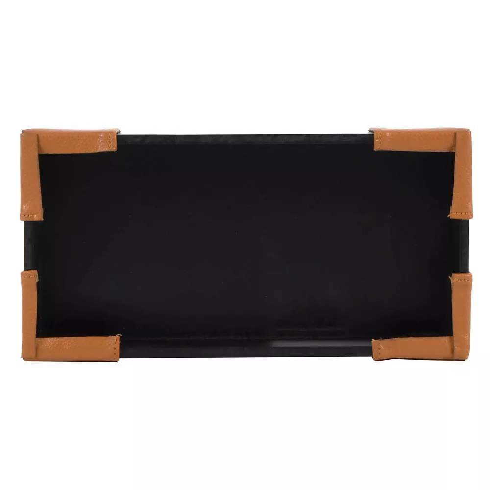 - Faux leather corner accents